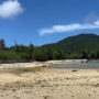 砂浜も狭く、砂に海藻などが混じっていますが、水の透明度はあります。